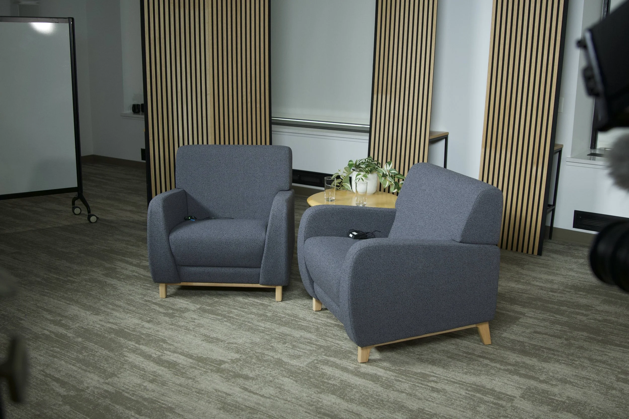 We started by walking the office and gathering anything that could help shape the frame—plants, tables, alternate seating. Anything that could add depth and break up the emptiness.